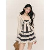 Polka Dot Lace Top & Umbrella Skirt Set
