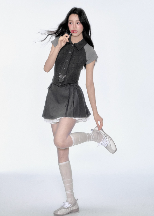 스커트 원단: 폴리에스터 80%, 비스코스 15%, 스판덱스 5%